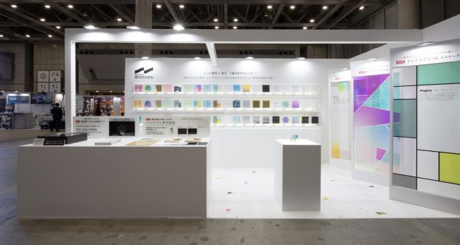 アイデアのヒントとなるシート素材の組み合わせサンプルを多数展示する他、5月発売の「低反射フィルム 微粘着タイプ」や広幅規格を追加した「セプテットフィルム」、6月発売の環境に配慮した新しい「バイオマスタフカル」、アンティークガラス調の「フォグラス C-10」、新柄を追加した「フォグラスガード」などを展示いたします。ぜひお越しください!