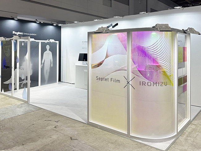 フォグラス × IROMIZU、セプテットフィルム × IROMIZUの組み合わせ展示の他に、特殊機能フィルムのラインナップに新しく追加された、水滴や曇りを防ぐ「防曇フィルム」。映り込みを防止する低反射フィルムSF-1000の「弱(微)粘着品SF-1000N」など注目の製品を展示いたしております。特殊機能フィルムは実際に効果を体験できますので、ぜひお越しください!