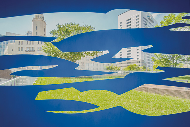 第23回 CSデザイン賞 学生部門にて金賞を受賞された、白石 水遼さんによる作品《かがやき》を、象の鼻テラスの協力により、(株)中川ケミカル施工のもと、象の鼻テラスの税関側のガラス面に展示しております。10月21日(月)〜 10月22日(火)の期間は象の鼻テラス館内にて学生部門の入選作品11点をまとめたパネル展示を開催予定。