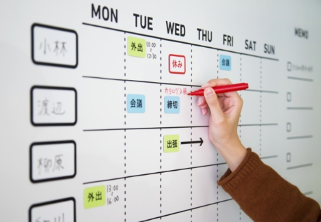 壁やガラス面に貼り付けるだけでホワイトボードにでき、限られたスペースを有効活用することができます。