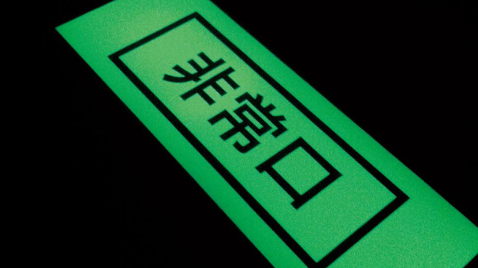夜光テープ、スーパー夜光テープの2種類は使用方法や置き色の違いでお選びいただけます。最大1000㎜幅のシート状なので幅広いデザインに対応します。テープ状に加工する事で避難誘導にも使用可能です。各色の残高輝度については製品仕様書にてご確認ください。
