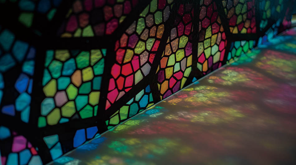 透明インクジェットフィルムにラミネートとして使用することで表面の質感を変えることができ、ステンドグラスのような風合いも表現できます。