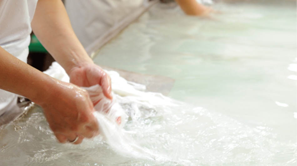 和紙シートは、「大雲竜」・「雲竜」・「無地」の3タイプ、それぞれ「白」と「生成」の2色を揃えた全6種類のラインナップです。「大雲竜」と「雲竜」は、和紙の原料である楮(こうぞ)の風合いを活かした、表情豊かな雲竜模様が特徴です。