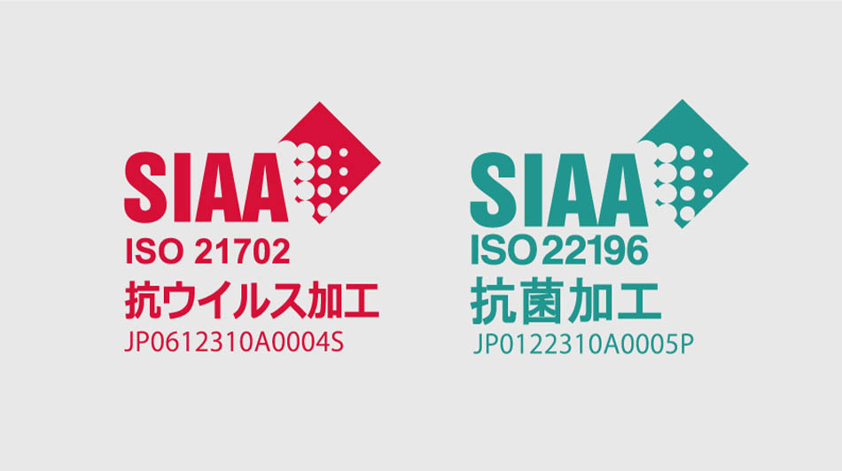 抗菌・抗ウイルス試験において、ISO基準を満たすSIAA(抗菌製品技術協議会)マークを取得しております。