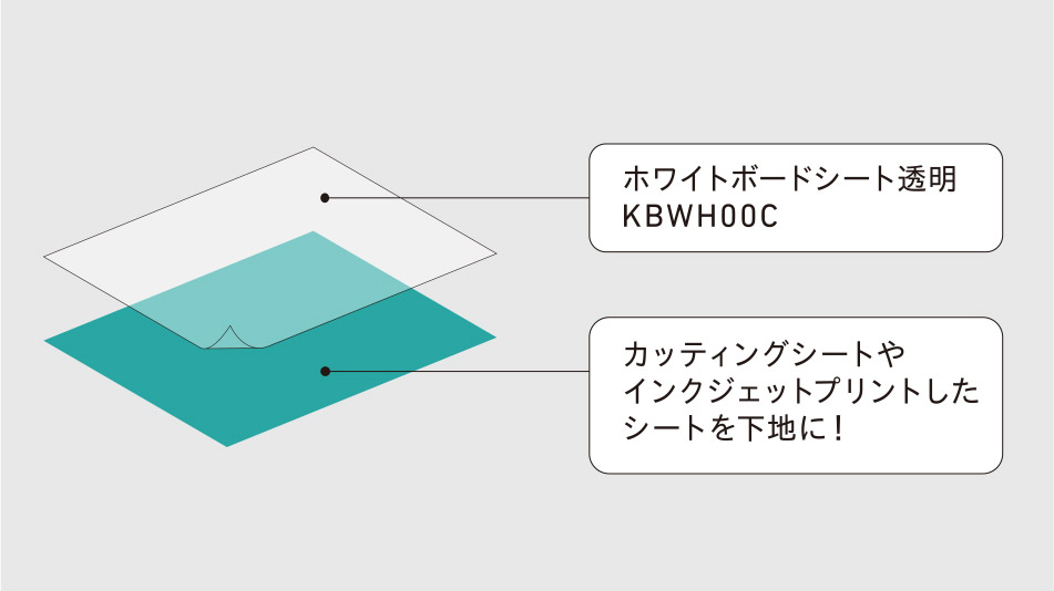 無色透明の「ホワイトボードシート透明」とカッティングシート®を組み合わせることで、お好みの色のホワイトボードを作り出せます。インテリアに合わせた配色など、表現の幅が拡がります。また、インクジェットプリントのラミネートとしても使用可能なので、スケジュール表やグラフィックなど、デザインを施したホワイトボードの制作も可能です。