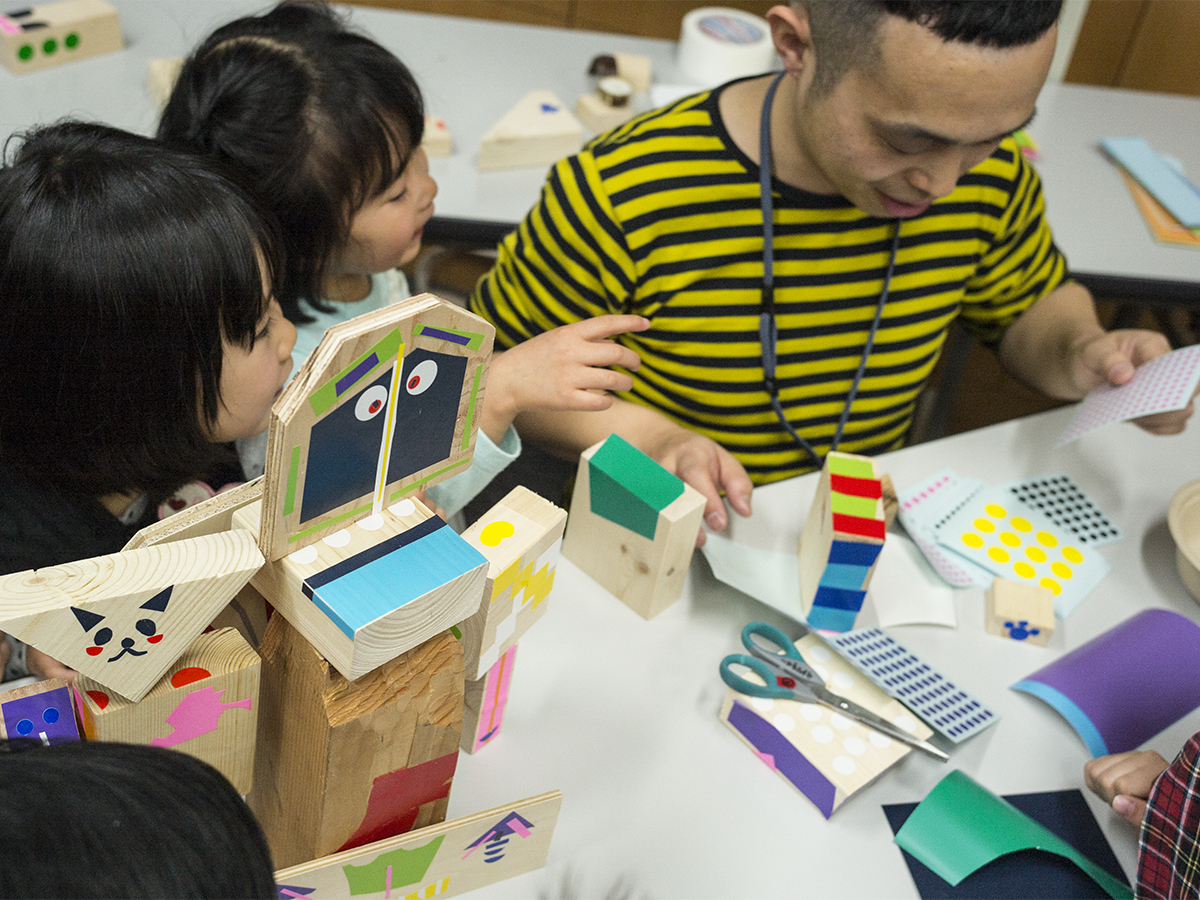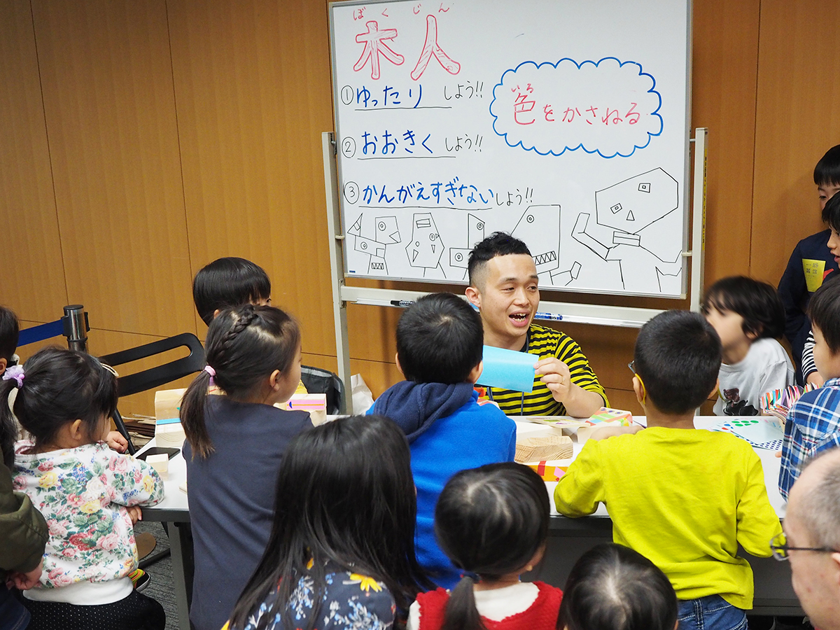 アートフェアに怪人あらわる!木人(ぼくじん)積み木をつくろう