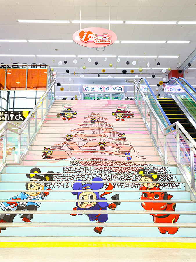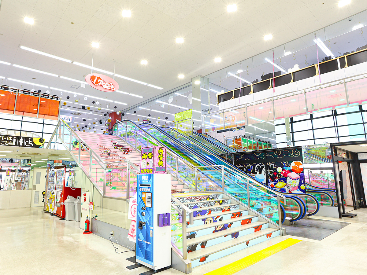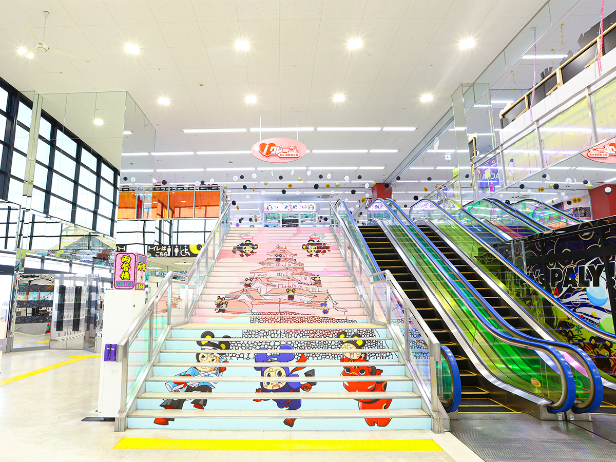 エスカレーターと二階の手摺りにセプテットフィルム(SPT-001CGH / SPT-002CGH)を施工